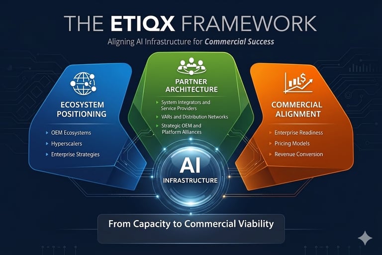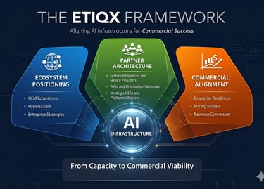 AI infrastructure does not scale through capacity alone. It scales through alignment—across ecosystems, partnerships, and enterprise demand. The ETIQX Framework is designed to help infrastructure platforms move from deployment to commercial traction by focusing on three critical dimensions. This helps transform infrastructure from deployed capacity into a commercially aligned, ecosystem-driven platform built for scale.